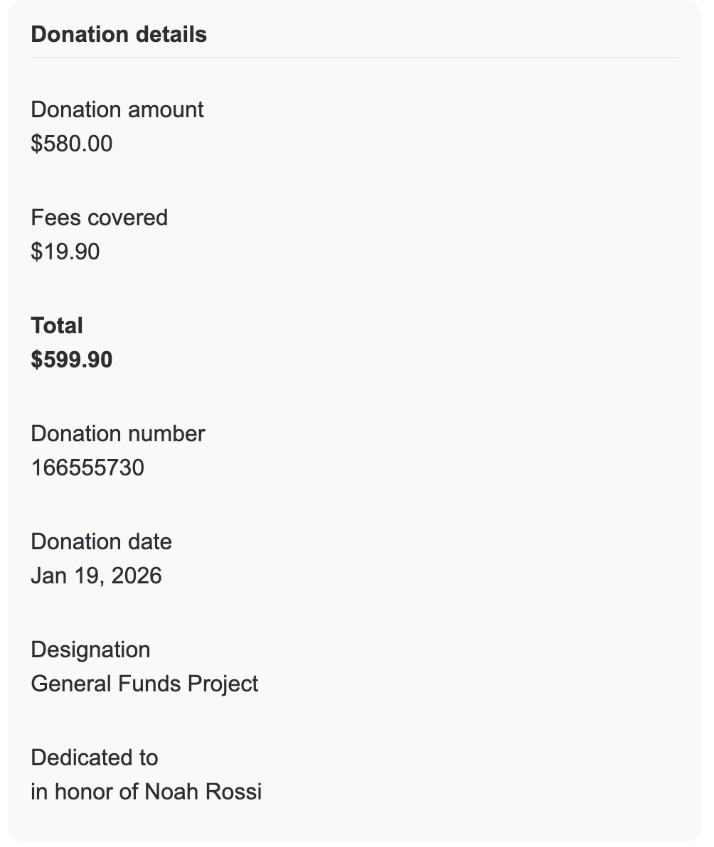DONATION FOR: $580.00